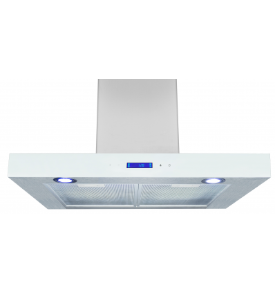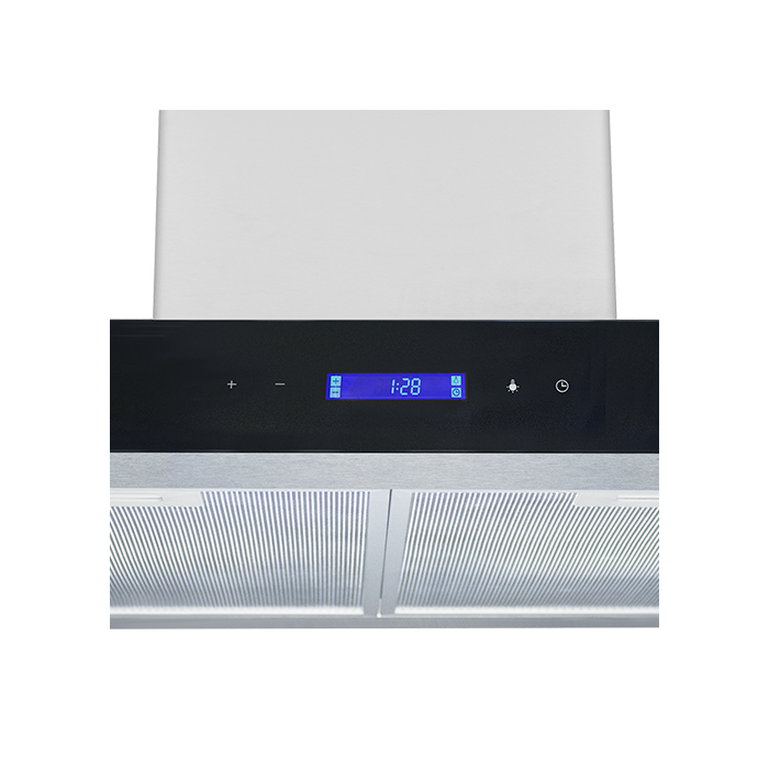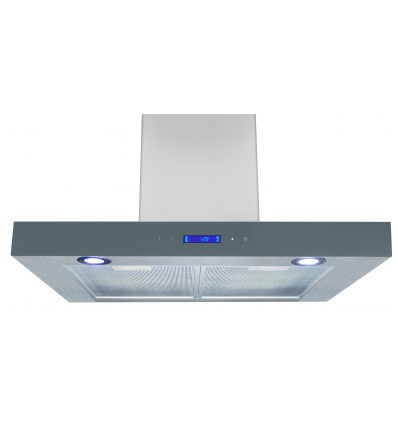 Hotte de cuisinière à fixation murale avec panneau frontal de couleur interchangable. Conçu pour plafonds de 8' ou 9'. Extension de chemininée optionnelle disponibles.
