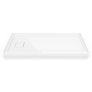 Base de douche en alcôve avec drain écentré couvert (gauche ou droite) et 3 brides de carrelage intégrées.
