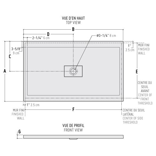 Base rectangulaire avec drain central couvert.