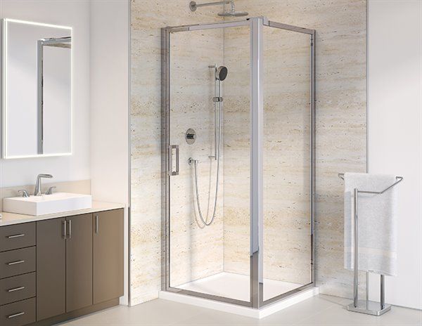 • Hauteur de la porte de douche : 79" (79 3/4" jusqu'au dessus de la barre de support)