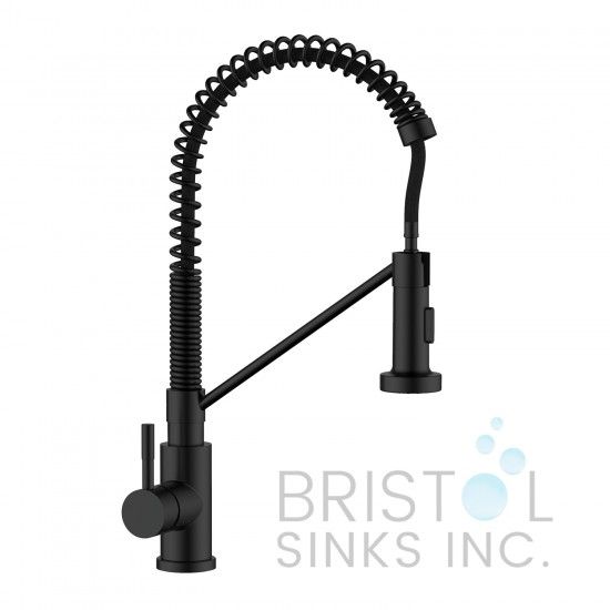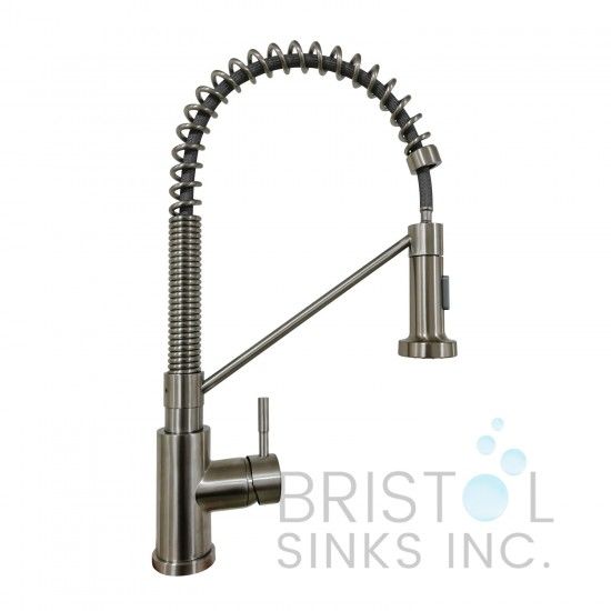 "Le robinet de cuisine de style commercial Miranda présente un design industriel avec une forme à arc élevé. Ce robinet hautement fonctionnel est doté d'une tête de pulvérisation rétractable pour une portée et un mouvement étendus. Le jet aéré ou le jet fabriqué avec Easy Push Button facilite rincez la vaisselle et éliminez les résidus alimentaires.Faites une déclaration de design avec notre Miranda en nickel brossé.Un robinet de cuisine Bristol Sinks hautement fonctionnel et magnifique.