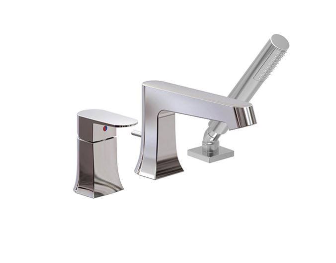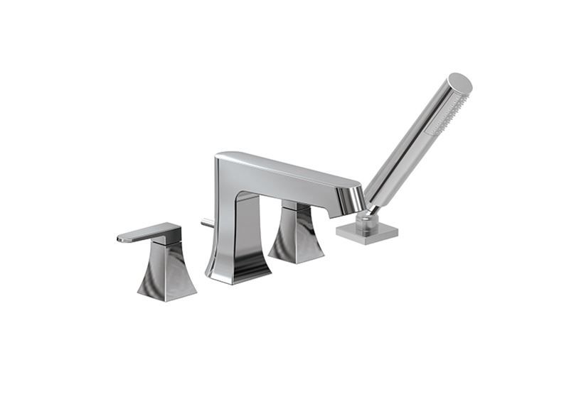 Robinet de bain avec douchette de la collection Misto disponible en 2, 3 ou 4 morceaux en fini chrome, par ALT.