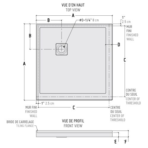 Base en coin carrée  Seuil bas avec drain couvert.