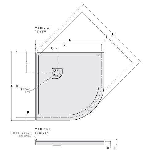 Base en coin Ronde avec drain couvert.