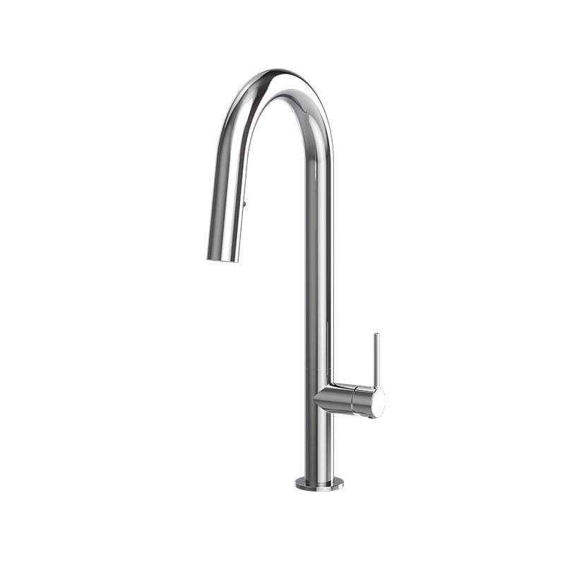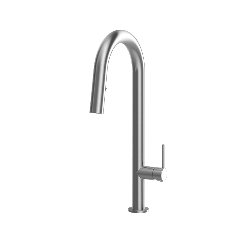 Robinet de cuisine mono-trou Douchette rétractable à 2 jets Flexible de douchette à pivot Bec pivotant 360° Construction en laiton massif Cartouche de céramique Conception 100% canadienne